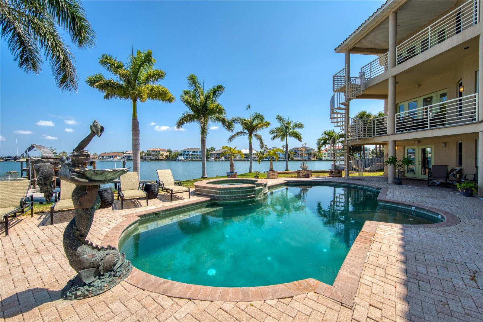 Spanning over 7,029 square feet on a 32,888 square foot lot, this waterfront estate boasts: