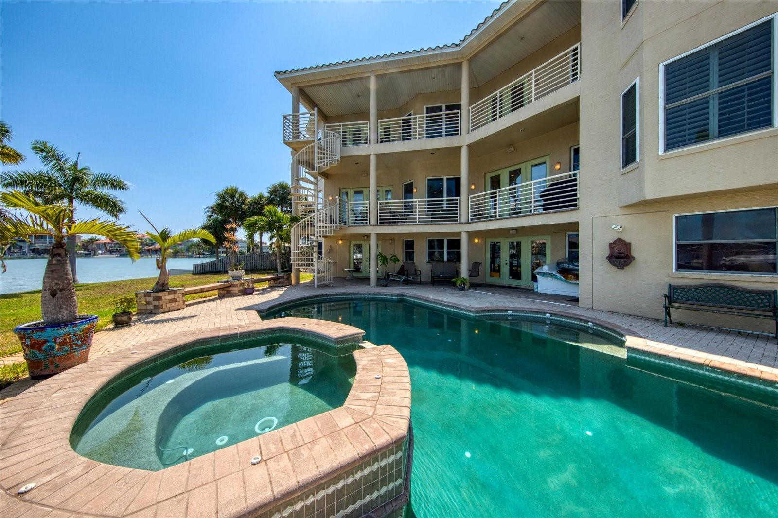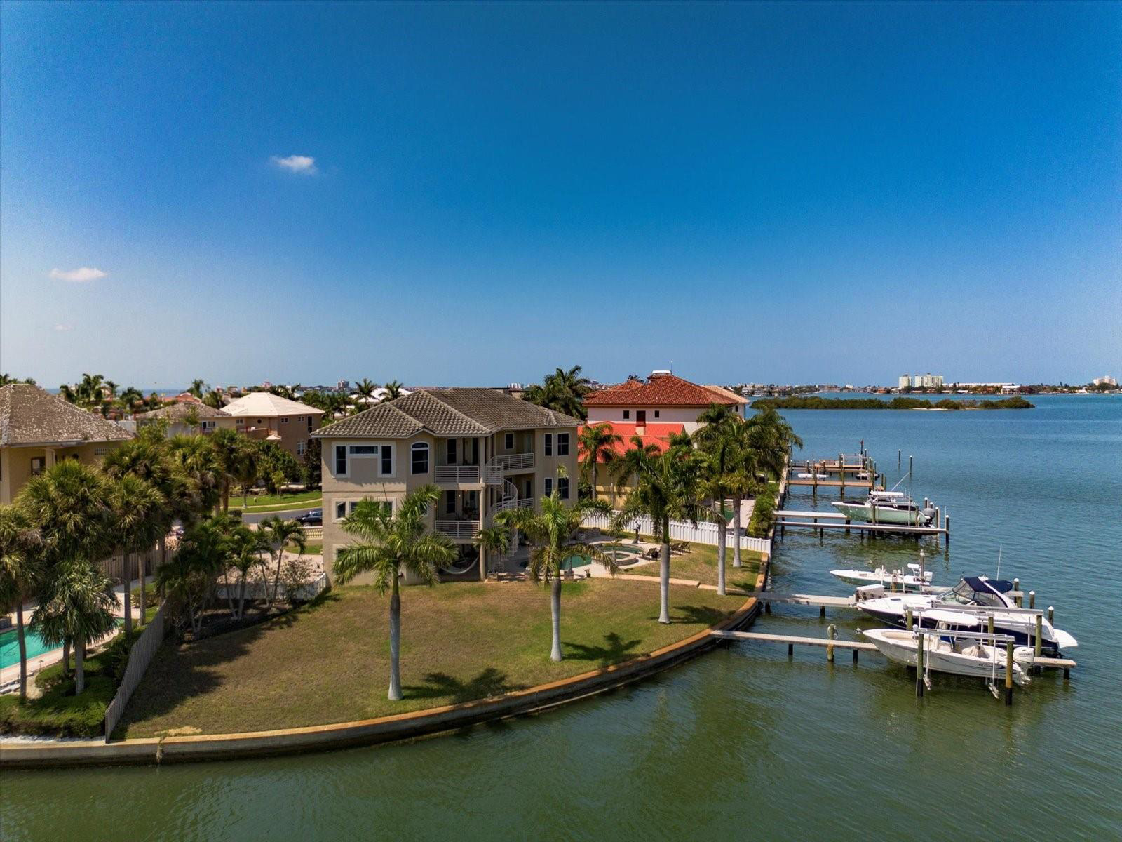 Spanning over 7,029 square feet on a 32,888 square foot lot, this waterfront estate boasts: